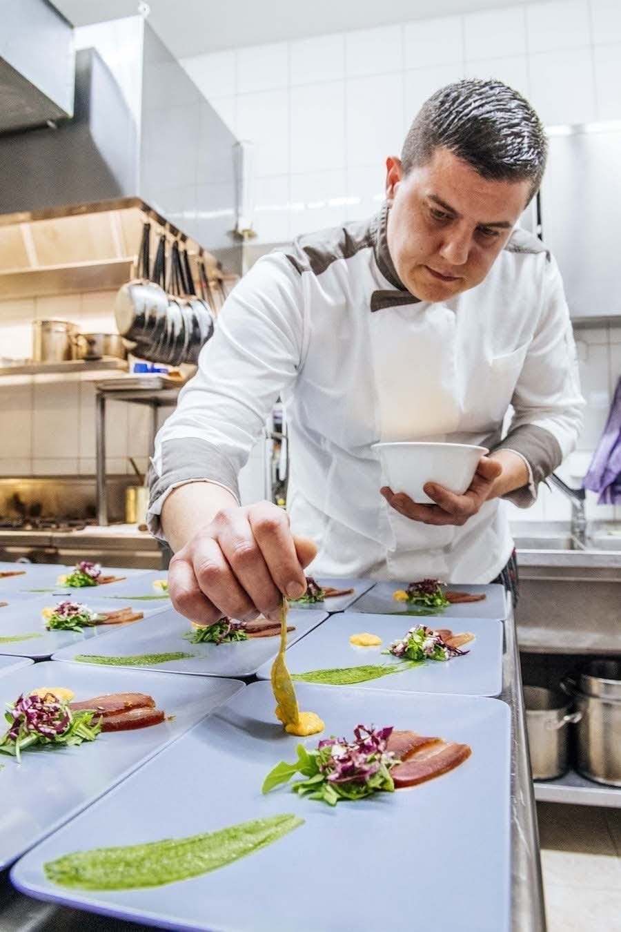 He often enhances his dishes with carefully selected fresh and smoked seafood elements, adding depth and character while preserving the integrity of the main ingredient.